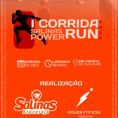 A I CORRIDA SALINAS POWER RUN é uma prova de corrida de rua com percurso de 5 km, organizada pelo Salinas Atacarejo em parceria com a Power Fitness Academia. O evento tem como objetivo incentivar a prática esportiva e a integração entre atletas